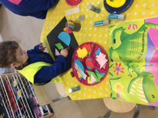 Our topic story, Mad About Dinosaurs!, sparked lively conversations among the Chicks. They learned the names of various dinosaurs and identified some of their unique features. This led seamlessly into our Art activity, where the children used paper shapes to create their own dinosaurs. Later in the week, the Chicks explored measurement and mixing during our Cookery session, making dinosaur-shaped butter biscuits with cutters.