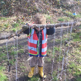 The sun was shining all week and the Chicks spent a lot of their time in the Outdoor Learning Environment. On Monday the Pink and Yellow Chicks went on their Outdoor Learning walk to the Common where they had great fun climbing trees. Their task this week was to find natural items to make a Forest School “Shower Curtain”. They worked in pairs and collected a range of brilliant objects such as sticks, leaves, feathers, and daises. With help from the teachers, we then tied the items onto pieces of string to make the shower curtain.