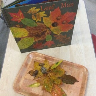 The children have had a very busy week learning about Autumn and all the Autumnal leaves that have been falling off the trees. Our topic book has allowed the children to use their imagination and during the week the children used leaves and loose parts to create their own Leaf Man pictures. They also enjoyed exploring the messy tray, searching for mini beasts hiding under the soil and the leaves.