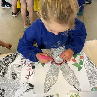 Our Mark-Making table was also buzzing all week with children using different media and enjoying using our animal themed mindfulness colouring pages.