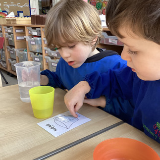 This week we also visited the Secret Garden at Finton House and were blessed with wonderful weather. The children loved mixing in the Mud Kitchen, creating role play scenarios based on pirates and reading books with their teachers. All the measuring in the Mud Kitchen led to us exploring capacity in on Maths Focus Time. The walk this week was particularly exciting as we saw several emergency vehicles travelling with their sirens on and some tree surgeons navigating the tall trees. We also loved our letter formation practise using shaving foam to allow our fingers to glide as we formed each letter and create a sensory experience.